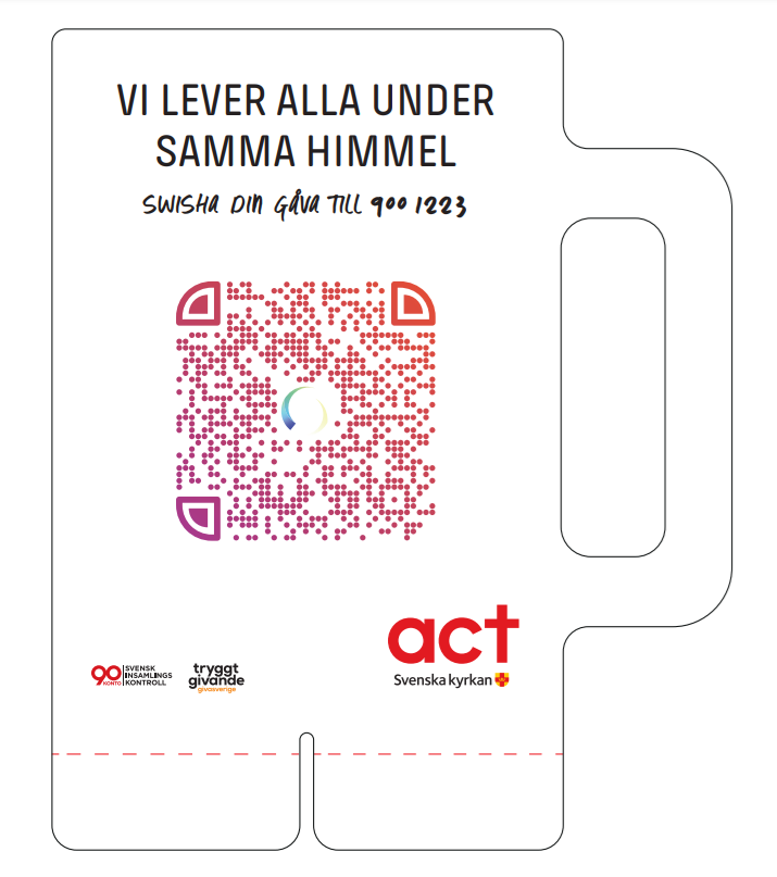 OBS! Bössan är slut i lager och en ny och uppdaterad bössa är i produktion. Så snart vi har information om beräknat lev.datum för den bössan kommer det publiceras här i webbshopen i det nya SK-numret, SK25467. Bössa för Swish-gåvor till Act Svenska kyrkan. Bössan går att hålla i handen vid bössinsamling eller ställa på ett insamlingsbord eller ett bord vid kyrkkaffet. Artikeln är slut i lager och kommer uppdateras.