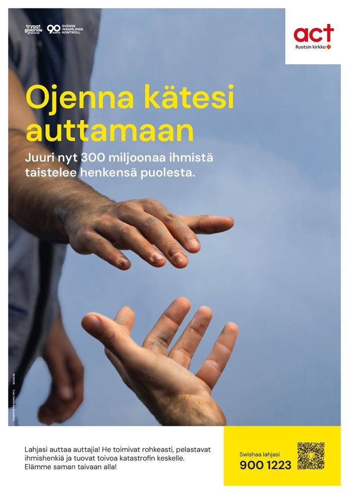 Affisch med kampanjbudskap på finska med QR-kod, endast för nedladdning.