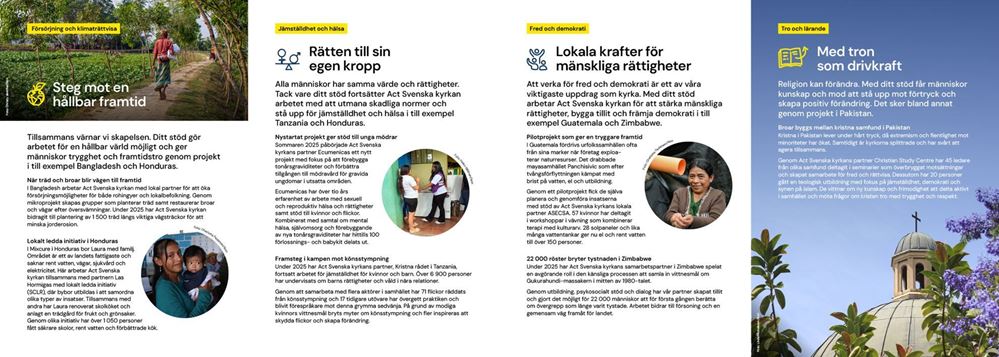 Folder med återkoppling på några av Act Svenska kyrkans insatser under 2025. Foldern finns endast för beställning.