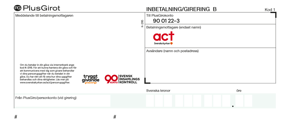 Inbetalningskort, Act Svenska kyrka