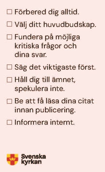 Kort i visitkortsstorlek med tips att tänka på inför tidning- radio- respektive tv-intervjuer. OBS! Korten ligger buntade i 10 kort per bunt. Vid beställning: 1 st=10 kort.
